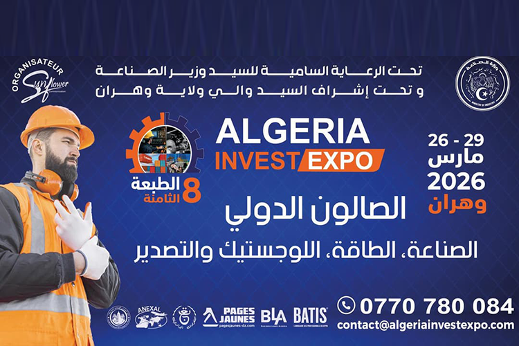 ستنظم الطبعة الثامنة للصالون الدولي للاستثمار في مجالات الصناعة والطاقة والبناء والأشغال العمومية واللوجستيك والتصدير" ألجيريا إنفست إكسبو"