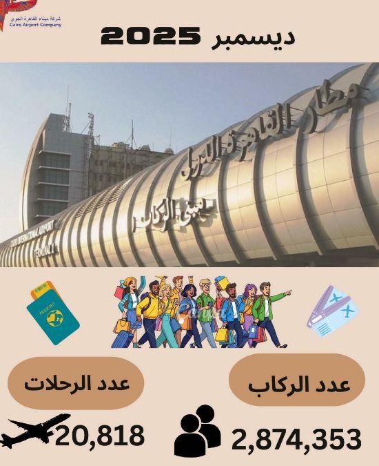 شهد مطار القاهرة الدولي ارتفاعًا ملحوظًا في معدلات التشغيل خلال شهر ديسمبر 2025، مقارنة بالفترة نفسها من عام 2024، وفقًا للإحصاءات الرسمية.