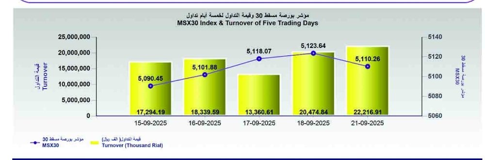 بورصة مسقط تغلق متراجعة عند 5110.2 نقطة.. والتداول يرتفع بنسبة 8.5%