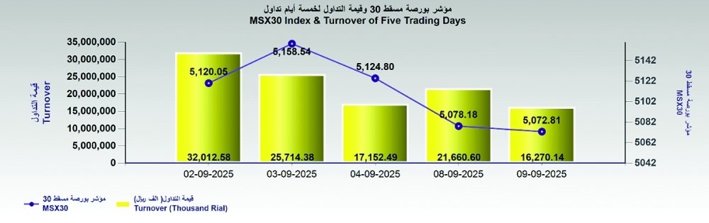 بورصة مسقط تغلق متراجعة عند 5072.2 نقطة.. والتداول عند 16.2 مليون ريال