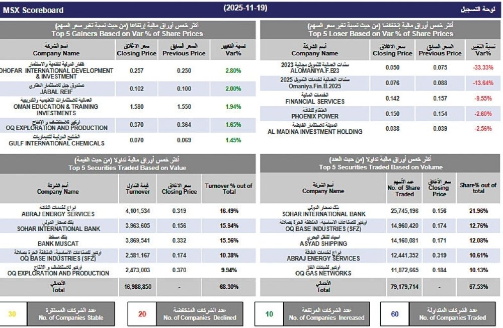 بورصة مسقط تفقد 4.6 نقطة.. والتداول 24.8 مليون ريال