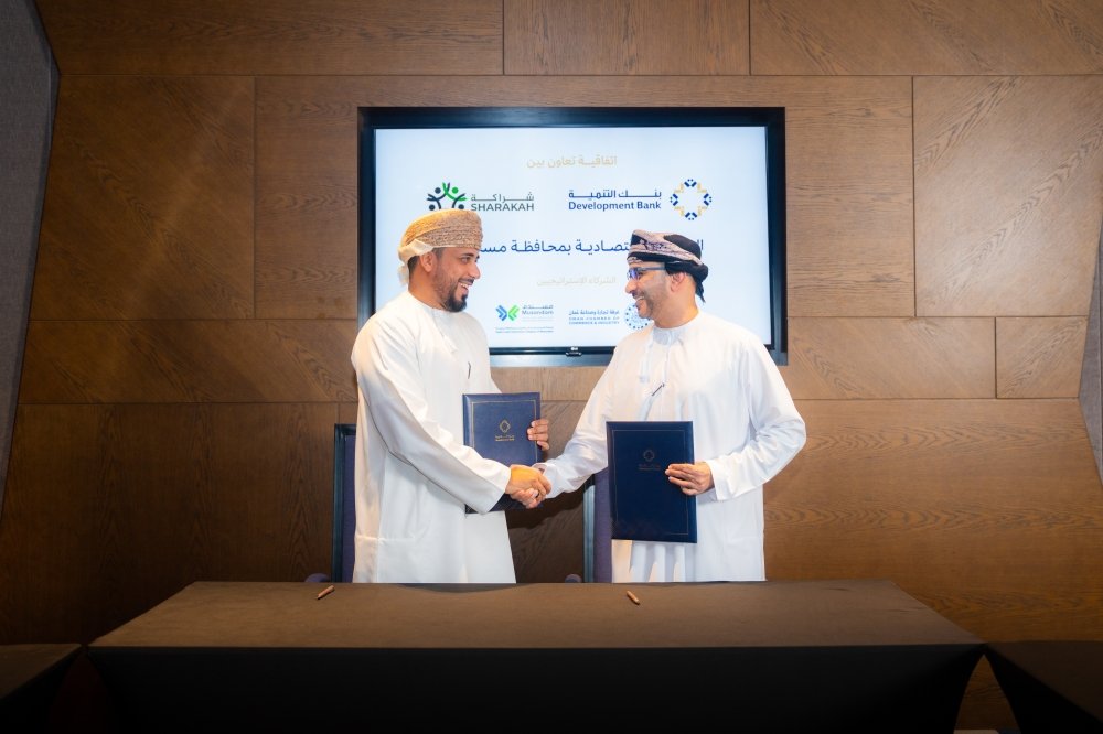 العُمانية: وقع بنك التنمية وصندوق تنمية مشروعات الشباب"شراكة" اتفاقية تعاون بشأن تنفيذ مشروع تجريبي لتطبيق مبادرة البستنة الاقتصادية في محافظة مسندم.وقع الاتفاقية حسين بن علي اللوا...