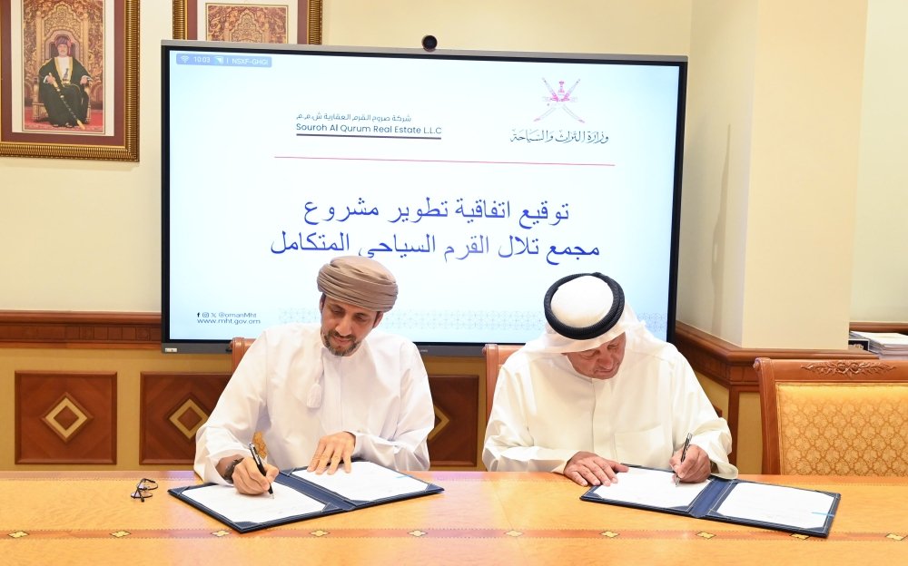 العمانية: وقعت وزارة التراث والسياحة اليوم مع شركة صروح القرم العقارية اتفاقية تطوير مشروع مجمع سياحي متكامل بمنطقة القرم في ولاية بوشر بمحافظة مسقط على مساحة تقدر بنحو 165 ألف متر.