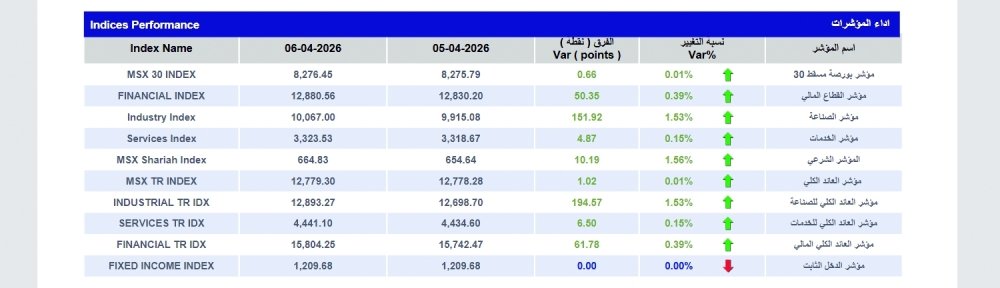 مؤشر بورصة مسقط يغلق عند حاجز 8276 نقطة وتداولات 73.8 مليون ريال