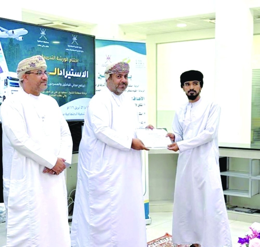 اختُتمت اليوم فعاليات البرنامج التدريبي (الاستيراد الذكي) المخصص للباحثين عن عمل بولاية بهلا، والذي استمر على مدى ثلاثة أيام، وذلك تحت رعاية سعادة الشيخ سعيد بن علي بن أحمد الصلف ا.