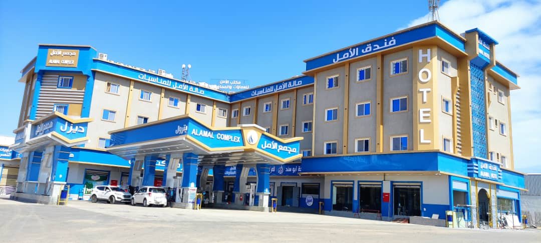 مميزات مجمع الامل تكمن في انه يوفر جميع الخدمات للزائرين ونزلاء الفندق ، ويحتوي على محطة للبترول مكونة من ست طرمبات اربع بترول واثنتين لتعبئة الديزل ،
