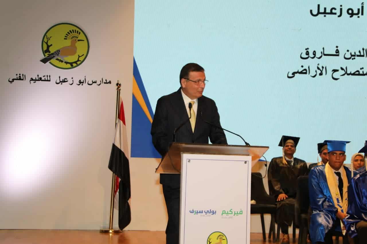 شهد علاء فاروق وزير الزراعة واستصلاح الأراضي، حفل تخرج الدفعة الأولى، من مدرسة أبوزعبل للتلمذة والتنمية الصناعية، بحضور الفريق كامل الوزير، نائب رئيس الوزراء للتنمية الصناعية ووزير النقل والصناعة، والمهندس محمد شيمي، وزير قطاع الأعمال العام، والمهندس أيمن عطية محافظ القليوبية، والمهندس شريف الجبلي رئيس مجلس إدارة المجموعة، والمهندس عبدالسلام الجبلي نائب رئيس مجلس الإدارة، وعدد من أعضاء مجلسي النواب والشيوخ، وبعض السفراء، وكبار المسئولين الحكوميين.