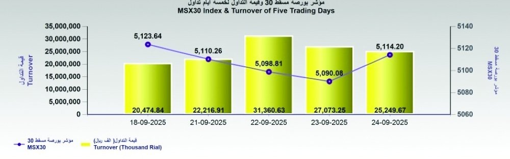 مؤشر بورصة مسقط يكسب 24 نقطة بدعم من القطاع المالي والخدمي والصناعي