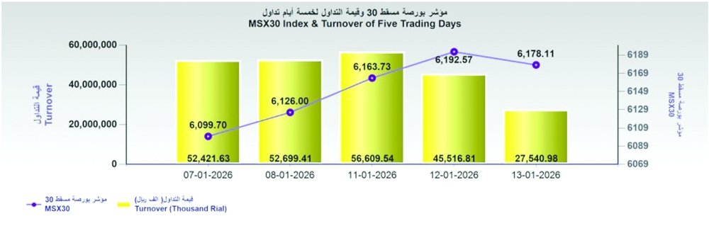 مؤشر بورصة مسقط يغلق عند 6178 نقطة.. والقطاعات الرئيسية تتراجع