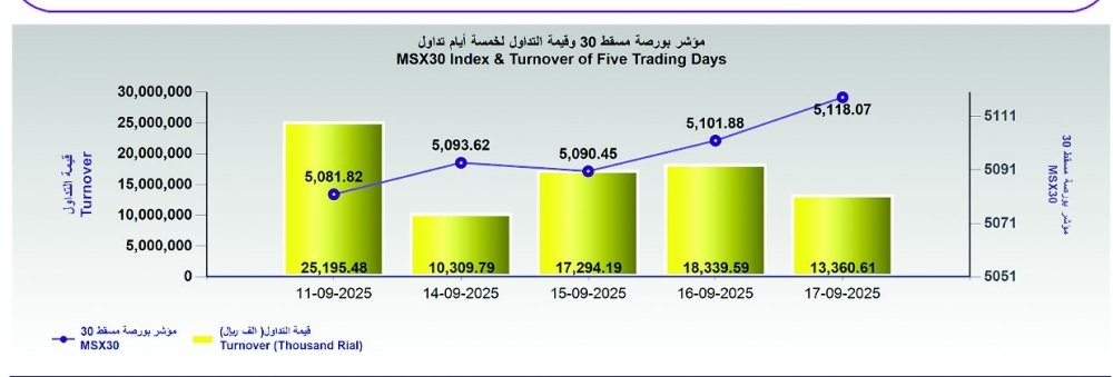 مؤشر بورصة مسقط الأسبوعي يكسب 41.8 نقطة .. والتداول 79.7 مليون ريال
