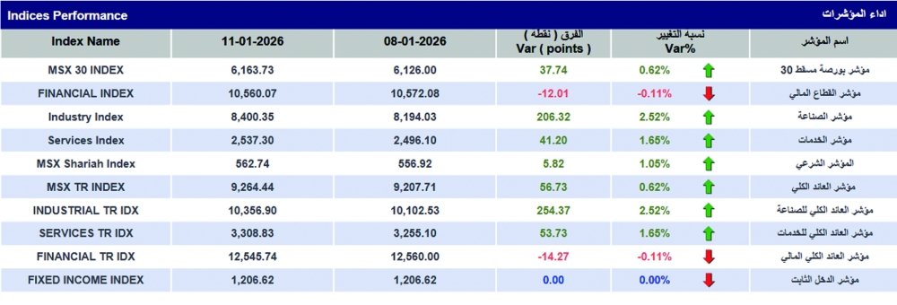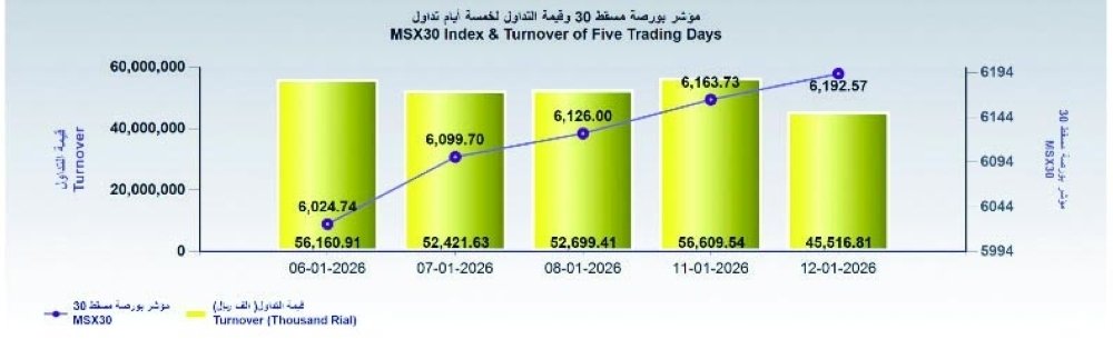 مؤشر بورصة مسقط يرتفع بمقدار 37 نقطة.. والتداولات ترتفع إلى 56 مليون ريال