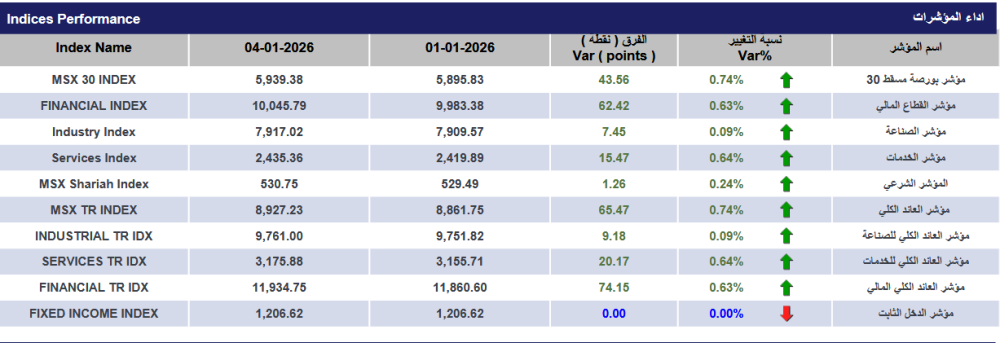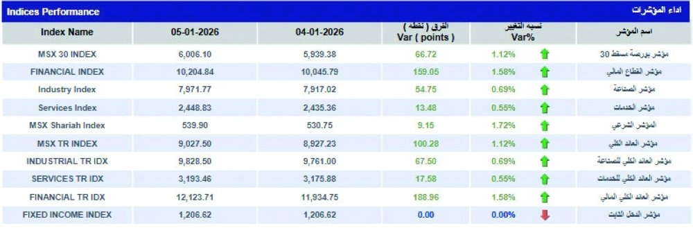 مؤشر بورصة مسقط يرتفع 43 نقطة .. والتداولات تتخطى 42 مليون ريال