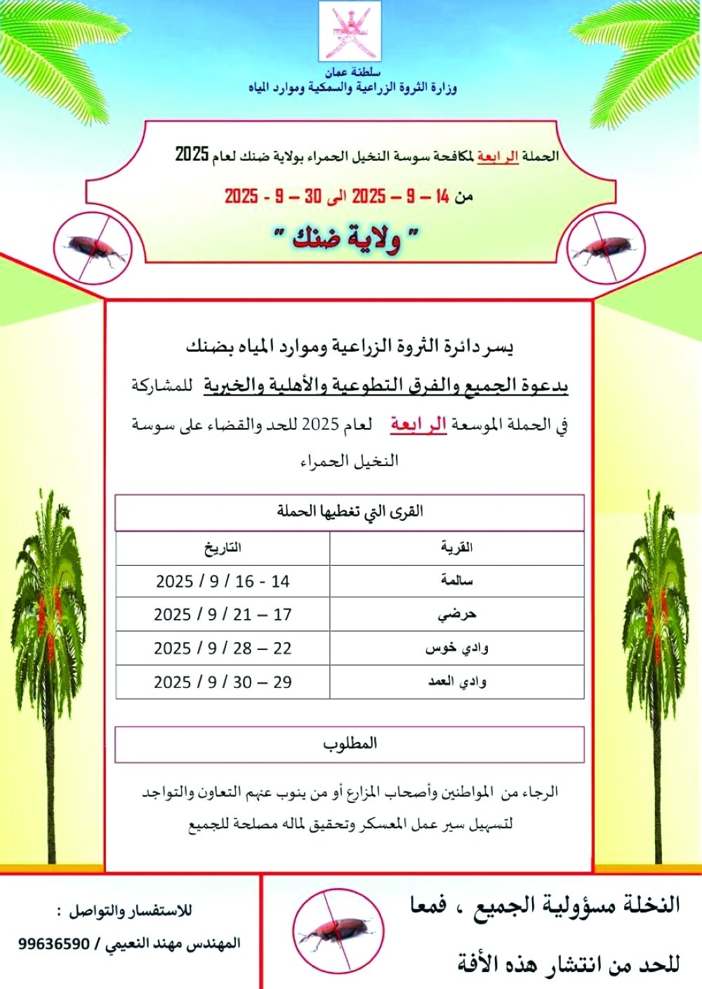 الحملة الموسعة الرابعة لحشرة سوسة النخيل بضنك