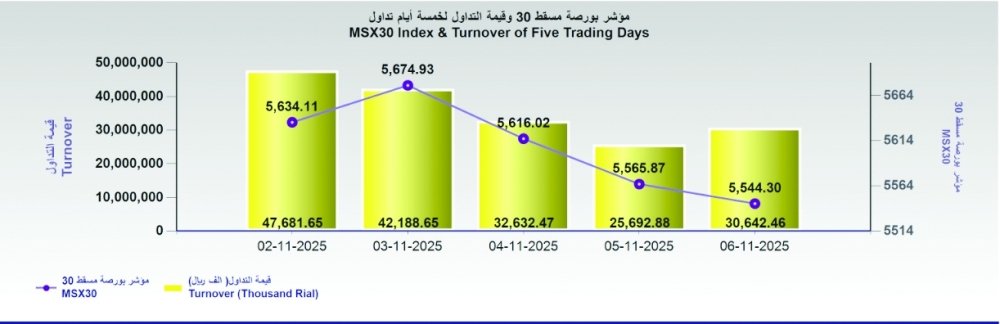 بورصة مسقط تغلق 5544.30 نقطة.. والتداولات بلغت 30.6 مليون ريال