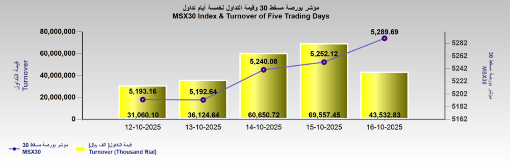 بورصة مسقط تغلق عند 5289.69 نقطة .. والتداولات 43 مليون ريال
