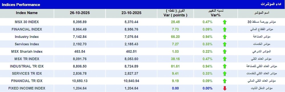 بورصة مسقط تكسب 5395.89 نقطة.. والتداولات 36.4 مليون ريال