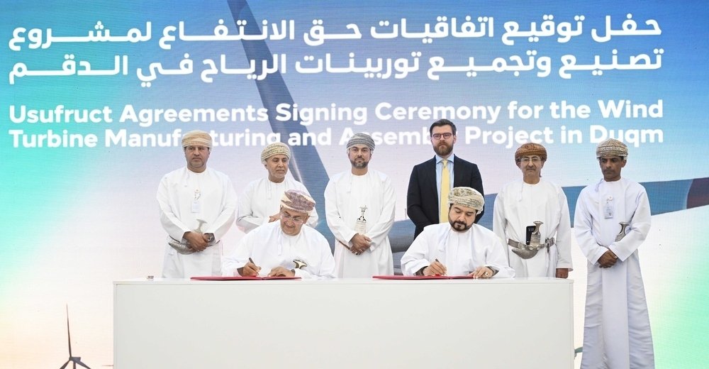 توقيع اتفاقيات حق انتفاع لإنشاء مصنع لتوربينات الرياح بالمنطقة الاقتصادية الخاصة بالدقم