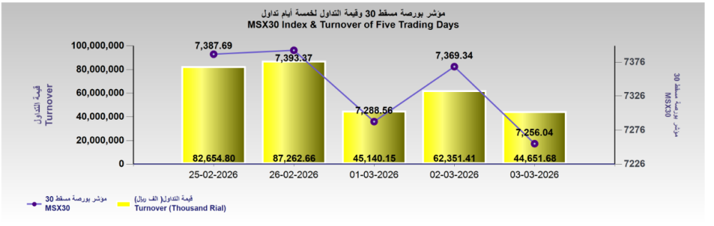 بورصة مسقط يغلق على انخفاض .. وتداولات 44.6 مليون ريال