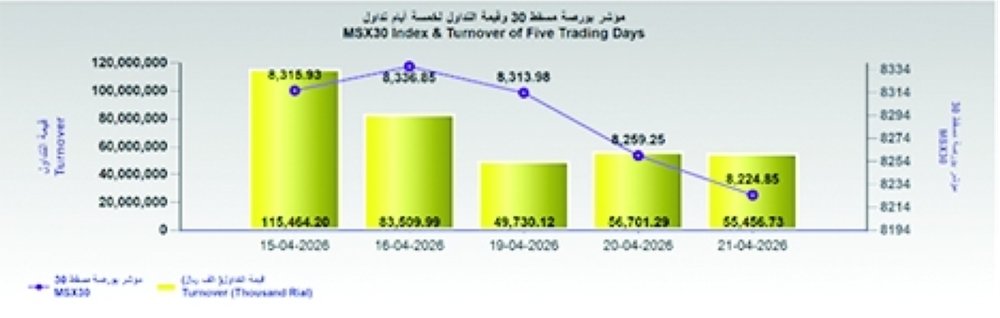 تراجع بورصة مسقط بضغط القطاعات الرئيسة وسط نشاط تداول قوي وتباين في أداء الأسهم
