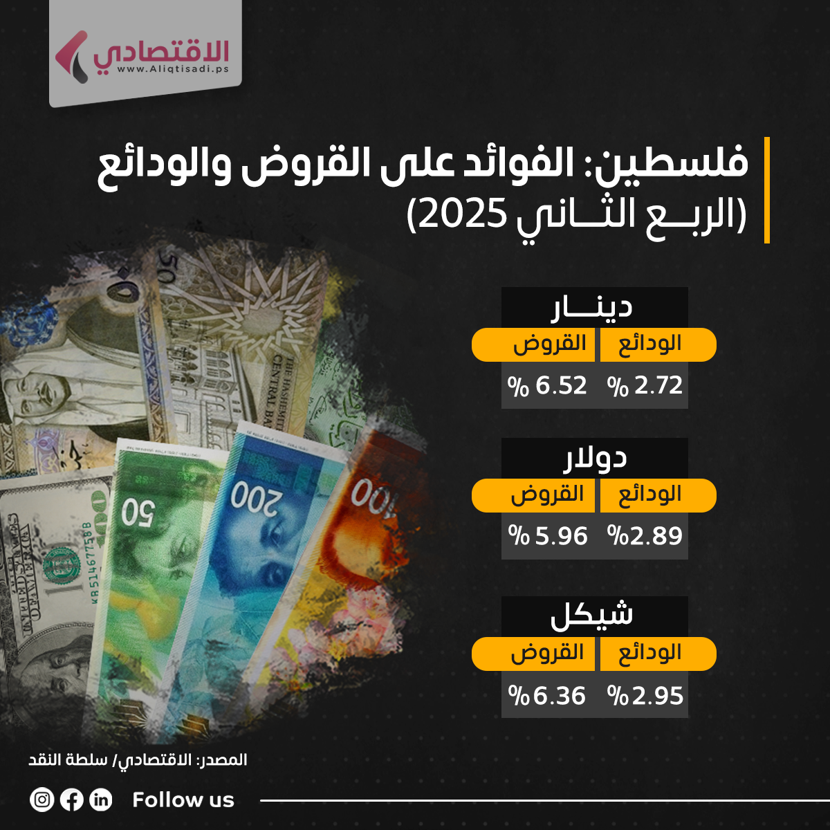 ارتفاع الفائدة على قروض الدولار والدينار في فلسطين