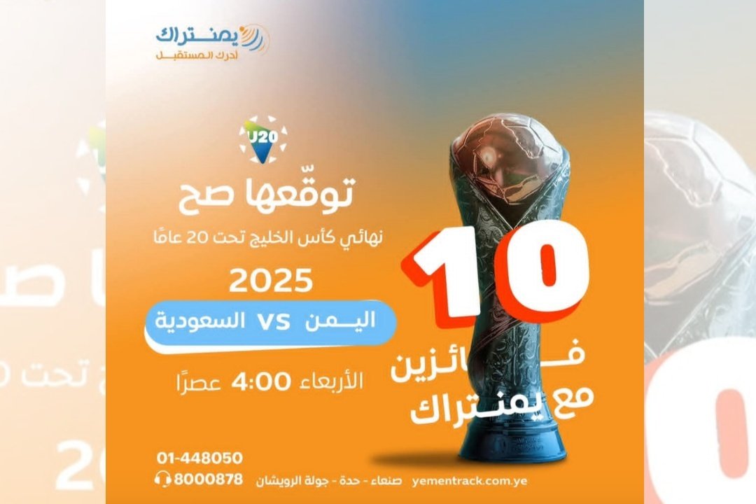 أعلنت شركة يمنتراك المحدودة، الرائدة في مجال أنظمة التتبع وأتمتة الأعمال، عن إطلاق مسابقة جماهيرية للتوقعات الرياضية بمناسبة المباراة النهائية التي تجمع المنتخبين اليمني والسعودي، اليوم الأربعاء 10 سبتمبر، عند الساعة الرابعة عصرًا، على ملعب مدينة الأمير سلطان الرياضية. وأوضحت الشركة