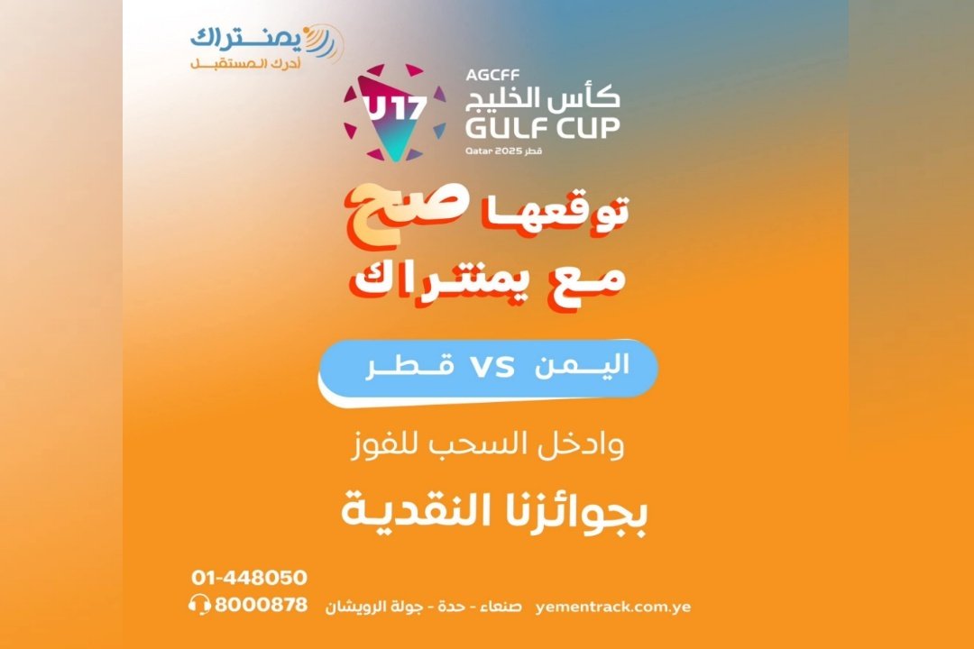 بالتزامن مع أجواء الحماس الكروي والالتفاف الجماهيري خلف منتخبنا الوطني للناشئين تحت 17 سنة، أعلنت شركة يمنتراك المحدودة عن إطلاق مسابقة تفاعلية مثيرة عبر منصاتها الرقمية، تزامنًا مع المباراة المرتقبة لمنتخب اليمن ضد نظيره القطري يوم الأحد الموافق 21 سبتمبر 2025،